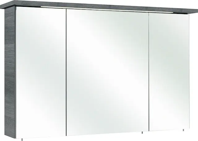 Der Spiegelschrank bietet mit den Maßen B115 x T20 x H72 cm großzügigen Stauraum hinter drei Spiegeltüren. Die 6 Einlegeböden sorgen für eine optimale Organisation im Badezimmer.. Der 3-türige Spiegelschrank inkl LED-Beleuchtung verfügt über eine Schalter/Steckdosen-Kombination für bequemes Aufladen und Verwenden von elektronischen Geräten.. Die LED-Beleuchtung sorgt für eine helle Ausleuchtung des Gesichts beim Schminken oder Rasieren, mit einer Leistung von 8,7W und 620LM.. IP44 zertifiziert für den Einsatz im Badezimmer und eine Stromzuleitungslänge von ca. 50 cm für flexible Installation.. Die zerlegten Möbel können, mit der Montageanleitung im Paket, schnell und einfach aufgebaut werden. Deutscher Hersteller und deutsche Produktion – Qualität made in Germany