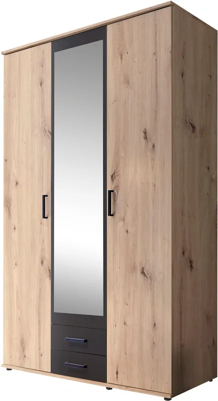 Mit Spiegel. Pflegeleichte Oberfläche. Modernes Dekor Artisan Eiche. Schubkästen auf Metalllaufleisten. Griffe Schwarz
