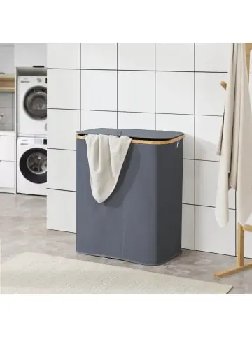 Wäschekorb Der elegante und praktische Wäschesammler ist ideal für Ihren Haushalt. Er macht das Sammeln und Sortieren Ihrer schmutzigen Wäsche zum Kinderspiel und sorgt somit für Ordnung in ihrem Zuhause. Der Wäschebehälter bietet durch seine großzügigen Abmessungen und den drei herausnehmbaren Wäschesäcken ausreichend Platz für Ihre Wäsche, wodurch Sie sich keine Sorgen mehr machen müssen, dass schmutzige Kleidung herumliegt. Der Deckel verhindert zudem unangenehme Gerüche durch Schmutzwäsche. Außerdem verfügt der Wäschekorb über praktische Seitengriffe, die ein müheloses Transportieren von einem Raum zum anderen ermöglichen. Ein weiterer Vorteil ist die einfache und schnelle Möglichkeit, den Korb bei Bedarf zusammenzuklappen und platzsparend zu verstauen, wenn er gerade nicht benötigt wird. Egal ob im Schlafzimmer, Badezimmer oder in der Waschküche – unsere Wäschebox fügt sich nahtlos in jede Umgebung ein. Mit ihrem schlichten und dennoch stilvollen Aussehen ergänzt sie die Einrichtung Ihres Hauses auf elegante Art und Weise. Durch das atmungsaktive Mesh-Gewebe der Wäschesäcke wird eine optimale Luftzirkulation gewährleistet, wodurch die gelagerte Wäsche stets frisch und gut belüftet bleibt. Der Wäschekorb besteht zudem aus feuchtigkeitsresistentem Material, sodass die nasse Wäsche auch nach dem Waschgang problemlos mit dem Korb transportiert werden kann. Produkt-Highlights: – Eleganter und praktischer Wäschesammler – Sortierung durch drei herausnehmbare Wäschesäcke – Deckel verhindert unangenehme Gerüche – Griffe an den Seiten für mühelosen Transport – Wäschesäcke sind atmungsaktiv durch Mesh-Gewebe – Wäschekorb aus feuchtigkeitsresistentem Material – Korb platzsparend zusammenklappbar – Schafft Ordnung im Haushalt Fassungsvermögen: 140 L Material: – Rahmen: Bambus – Wäschekorb: Oxford 600D (100% Polyester mit PVC-Beschichtung) – Wäschesack: Mesh-Gewebe (100% Polyester) Maße (HxBxT): 69 x 57 x 37 cm Farbe: Dunkelgrau Lieferumfang: – 1 x Wäschekorb – 3 x Einhängbarer Wäschesack Markenware aus dem Hause: [en.casa]