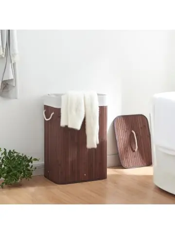 Wäschekorb Der elegante und praktische Wäschesammler ist ideal für Ihren Haushalt. Er macht das Sammeln Ihrer schmutzigen Wäsche zum Kinderspiel und sorgt somit für Ordnung in ihrem Zuhause. Der Wäschebehälter bietet durch seine großzügigen Abmessungen und dem herausnehmbaren Wäschesack ausreichend Platz für Ihre Wäsche, wodurch Sie sich keine Sorgen mehr machen müssen, dass schmutzige Kleidung herumliegt. Der Deckel verhindert zudem unangenehme Gerüche durch Schmutzwäsche. Egal ob im Schlafzimmer, Badezimmer oder in der Waschküche – unsere Wäschebox fügt sich nahtlos in jede Umgebung ein. Mit ihrem schlichten und dennoch stilvollen Aussehen ergänzt sie die Einrichtung Ihres Hauses auf elegante Art und Weise. Produkt-Highlights: – Eleganter und praktischer Wäschesammler – Herausnehmbarer Wäschebeutel für einfache Handhabung – Griffe an den Seiten für unkomplizierten Transport – Deckel verhindert unangenehme Gerüche – Natürliches und umweltfreundliches Material – Schafft Ordnung im Haushalt Fassungsvermögen: 72 L Material: – Wäschekorb: Bambus – Wäschesack: 100% Polyester Maße (HxBxT): 60 x 40 x 30 cm Farbe: – Wäschekorb: Braun – Wäschesack: Hellgrau Lieferumfang: – 1 x Wäschekorb – 1 x Einhängbarer Wäschesack Markenware aus dem Hause: [en.casa]
