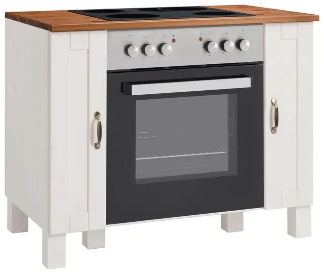 Landhaus-Optik. Metallgriffe. Maße (B/T/H): 100/50-60/85 cm. FSC®-zertifiziert. Hinter den Türen 6 Fächer