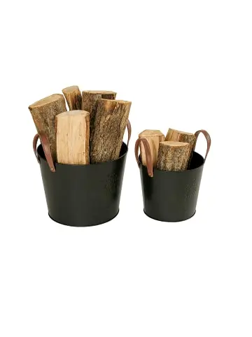 Diese Holztragekörbe im 2er Set sind die ideale Ergänzung Deines Kaminzubehörs. So kannst Du ganz leicht Dein Feuerholz vom Brennholzregal zum Ofen oder Kamin transportieren und Du hast Holzscheite zum Nachlegen stets schnell zur Hand. Aber auch zur Aufbewahrung kleiner Mengen von Brenn- und Feuerholz sind die Ofenkörbe ideal. Die schwarzen Metalleimer mit dem Lebensbaum-Design und den Lederhenkeln sind dabei auch optisch ein Blickfang in Deinem Wohnzimmer.Kaminholzkorb im Detail – Kleiner Korb H x D: ca. 31 x 35 cm / ca. 1,4 kg – Traglast: ca. 4 kg – Großer Korb H x D: ca. 35 x 45 cm / ca. 2,4 kg – Traglast: ca. 6 kg – Material: Eisen, Büffelleder – Farbe: Schwarz, BraunDekorativer Tragekorb für Holz – Praktisches 2er Set mit Feuerholzkorb in 2 Größen – Brenn- und Anzündholz einfach und bequem transportieren – Zur griffbereiten Lagerung von Kaminholz zum Nachlegen – Dekoratives Design aus schwarzem Metall mit Lebensbaum-Motiv – Robuste Lederhenkel zum Tragen sind ein optischer Kontrast Lieferumfang – 2x Feuerholzkorb – Dekoartikel sind nicht im Lieferumfang enthalten
