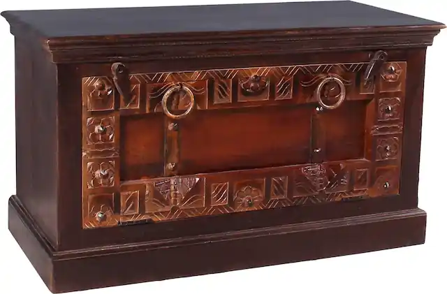 Im marokkanischem Stil. Platz für ca. 6 Paar Schuhe (ohne Absatz). Metallgriffe. Mit dekorativen Metallverzierungen