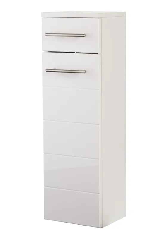 Für stehende und hängende Montage geeignet. Ausführung der Fronten mit modischen Querrillen. 5 Jahre Herstellergarantie auf alle Möbelteile. Badmöbel Made in Germany
