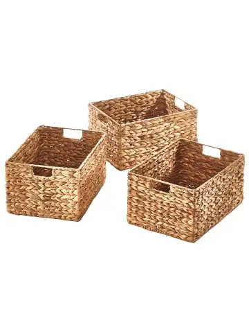 Dekoration spielt eine entscheidende Rolle dabei, ein Zuhause in einen gemütlichen und funktionalen Lebensraum zu verwandeln – unsere stilvollen Regalkörbe von Kobolo vereinen natürliche Eleganz mit praktischem Nutzen. Die Verwendung von Wasserhyazinthe verleiht diesen Körben nicht nur eine ansprechende Textur, sondern setzt auch auf Nachhaltigkeit – Wasserhyazinthe gilt als umweltfreundliches Material, das sich hervorragend für handgefertigte Produkte eignet. Die Grifflöcher dienen nicht nur als dekoratives Element, sondern erhöhen auch die Funktionalität – Sie ermöglichen ein müheloses Herausziehen und Tragen des Korbes, was besonders praktisch ist, wenn er in Regalen oder Schränken verwendet wird. Diese Aufbewahrungskörbe sind vielseitig einsetzbar – im Wohnzimmer als Regalkorb, im Badezimmer zum Verstauen von Handtüchern und Pflegeprodukten oder im Schlafzimmer als stilvolle Alternative zu herkömmlichen Aufbewahrungsboxen.