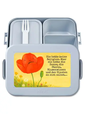 Bentobox MEPAL – stylisch, praktisch und zuverlässig von Mr. & Mrs. Panda. Diese Bento-Brotdose ist ideal für alle, die Ordnung beim Mittagessen lieben: Mit herausnehmbaren Einsätzen bringst du Abwechslung und Trennung in deine Mahlzeiten, dazu gibt es eine praktische Snackgabel für Obst oder Gemüse. Die Box ist Element-frei und Freundlich, so bleibt alles frisch und unbedenklich. Schüssel und Einsätze kannst du in der Mikrowelle erwärmen (ohne Deckel), und nach dem Gebrauch reinigt die Spülmaschine alles mühelos. Erhältlich in den Farben Salbeigrün, Hellblau und Pastellrot – für jeden Geschmack etwas dabei. Maße: kompakte Außenmaße, Inhalt: großzügiges Volumen, Gewicht: angenehm leicht. Hergestellt aus robusten Materialien (PP, TPE, ABS) und mit einer Druckfläche zur individuellen Gestaltung. Die Bentobox eignet sich super für Schule, Uni, Büro oder als Geschenk – sie ist leicht, handlich und trotzdem großzügig genug für eine vollständige Mahlzeit. Die durchdachte Aufteilung verhindert Vermischen von Speisen und macht das Essen unterwegs zum Vergnügen. Gönn dir eine Bento-ExperienZeichen mit dieser zuverlässigen Box!Mohnblume für Glaube und Respekt: Die Mohnblume, ein wahrer Augenschmaus, strahlt in lebhaften Rot- und Orangetönen. Ihre Blütenblätter sind filigran gezeichnet, und das schlafende Gesicht, das die Blume ziert, vermittelt Ruhe und Geborgenheit. Neben ihr leuchtet die kleine Knospe, die mit ihrem sanften Lächeln das Leben symbolisiert. Diese Blume spricht für die Selbstliebe und den Glauben an die eigenen Stärken. „Sie hatte keine Religion. Aber sie hatte die Sonne, die Sterne, Blumenwiesen und den Glauben an sich selbst…“ So erinnert uns die Mohnblume daran, dass unsere Liebe zur Natur und zu uns selbst eine spirituelle Erfahrung ist. Sie ermutigt uns, die kleinen Wunder im Leben zu schätzen und gibt uns den nötigen Motivationsschub, um unser wahres Potenzial zu erkennen.Nachhaltig Blühen: Die Flowerpower Kollektion von Mr. & Mrs. Panda nimmt dich mit auf eine Reise durch einen blühenden Garten, in dem Freude und Liebe in der Luft liegen. Unsere sorgfältig handgezeichneten Motive zeigen die Pracht der Natur in all ihrer Vielfalt. Von kleinen Blümchen bis zu prächtigen Gartenansichten – finde dein persönliches Stück Glück in unseren einzigartigen Produkten. Sie sind das ideale Geschenk für jeden Anlass oder einfach, um dir selbst eine Freude zu machen. Tauche ein in unsere Welt aus Blumen Deko, Frühlings Deko, und Sommer Deko, und lass deine Umgebung in einem neuen Licht erstrahlen. Die Flowerpower Kollektion wurde mit Herz und Seele von Mr. & Mrs. Panda geschaffen, um dir Freude und Inspiration zu bringen.Unser Produkt wird gesucht als: Bentobox, Snackbox, Motivation, Bento Box, Mohn, Meal Prep Box, Naturliebe, Frischhaltedose, Essensbox, Lunchbox, Vesperbox, Selbstliebe, Lebensmittelbehälter, Sommer Deko, Essensbehälter, Jausenbox, Bento-Brotdose, Respekt, Religion, Snackdose, Mohnblume, Räubertochter, Glaube