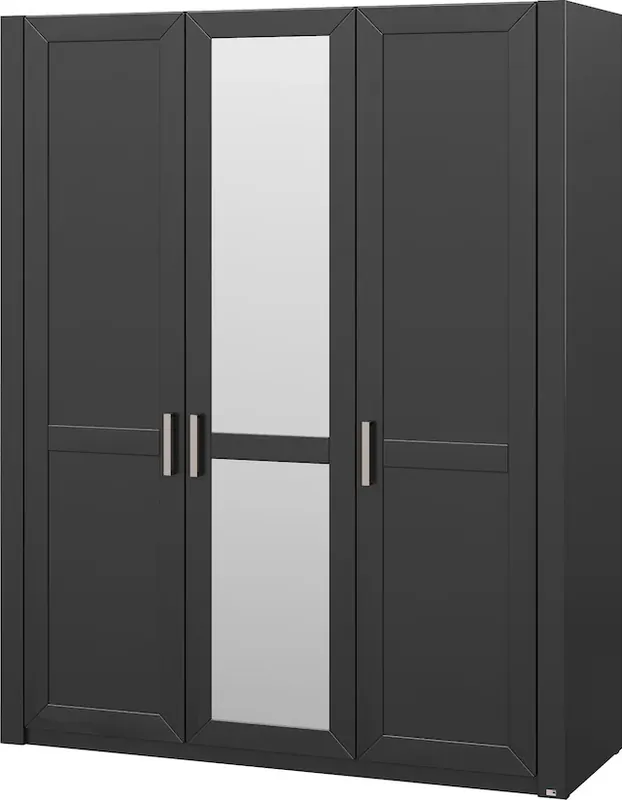 5 Jahre Hersteller-Garantie. Kleiderschrank mit Holz- und Spiegeltüren. Inklusive Einlegeböden und Kleiderstangen. Zwei Farbvarianten: Weißoder Grau. Maße (BxHxT in cm) 165/215/265 x 207 x 60 cm