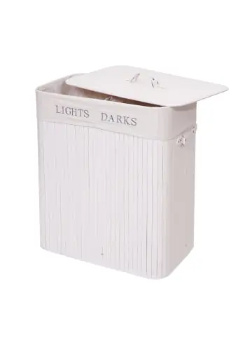 – Markeninhaber TÜV-Süd QM zertifiziert mit Nr. 12 100 59626 TMS für Qualitäts-Management in Deutschland – Füllmenge (ca.): 100l – Zwei Fächer – Mit Bodeneinsatz – Herausnehmbarer Wäschesack – Metallrahmen zur Stabilisierung – Mit Tragegriffen – Mit Trennwand- Schluss mit rumliegender Wäsche! Diese moderne Wäschetruhe hilft Ihnen schmutzige Wäsche ordentlich und sauber zu verstauen. Gleichzeitig lassen sich durch die Trennwand helle und dunkle Kleidungsstücke im Handumdrehen sortieren.- Der schöne Wäschesortierer aus Bambus fügt sich in jeden Raum perfekt ein. Die Handgriffe sorgen für ein bequemes Tragen der Wäschetonne zur Waschmaschine. Der Beutel ist waschbar und durch sein großes Fassungsvermögen lässt sich viel Wäsche verstauen. Maße (ca.):Höhe: 63 cmBreite: 55 cmTiefe: 34 cm Material:Korb: BambusWäschesack: 53% Polyester, 30% Baumwolle, 17% Viskose HINWEIS zum Volumen:Wir geben Ihnen die nutzbaren Liter an. Viele Anbieter geben angebliche Liter an, die bestenfalls ein Außenvolumen darstellen – darin wären dann aber sogar Griffe und heraus stehende Deckel integriert. Das ist für Sie nicht nutzbar. Von einer derart geschönten Darstellung nehmen wir Abstand. Dieser schicke Wäschekorb erfüllt drei Aufgaben in einem, er ist praktisch, dekorativ und dank der Fertigung aus Bambus auch noch ökologisch gut verträglich. Ausgestattet mit einem herausnehmbaren Bodeneinsatz und einem ebensolchen Metallrahmen hat der faltbare Korb einen stabilen Stand. Der zugehörige Wäschesack ist bequem am Korb zu befestigen und sorgt zusätzlich dafür, dass Ihnen kein Wäschestück verloren geht. Die beiden seitlichen Tragegriffe verhelfen zu einem leichten und problemlosen Transport. Wer nicht nur irgendeinen Wäschekorb möchte, sondern einen zugleich nützlichen und optisch ansprechenden Haushaltshelfer, hat hier genau das Richtige gefunden.Versandzustand: Zerlegt–Sicherheitshinweise für Teilartikel mit Artikelnummer 74041 Dieser Artikel ist eine Wäschtruhe / ein Wäschekorb und sollte nur als solcher verwendet werden. Der Artikel ist nur für den Innenbereich geeignet. Überladen Sie den Artikel nicht. Vorsicht: Verletzungsgefahr! Setzen, stellen oder stützen Sie sich nicht auf den Artikel. Vorsicht: Kippgefahr & Verletzungsgefahr! Sorgen Sie immer für einen festen Stand des Artikels.Vorsicht Erstickungsgefahr! Verpackungsmaterial, wie Plastikbeutel, gehören nicht in Kinderhände. Bitte von Babys und Kleinkindern fernhalten! Nicht über den Kopf ziehen! Vorsicht: Verschluckungsgefahr! Achtung dieser Artikel kann verschluckbare Kleinteile enthalten! Halten Sie die Kleinteile von Kindern fern! Prüfen Sie den Artikel regelmäßig alle 3-6 Monate auf Beschädigungen und gelöste Verbindungen. Ziehen Sie lose Schrauben wieder fest an! Sollten Beschädigungen entdeckt werden, darf der Artikel nicht mehr genutzt werden! Benutzen Sie diesen Artikel nur für die bestimmungsgemäße Verwendung, im technisch einwandfreien Zustand und für private Zwecke. Andere Verwendungen gelten als nicht bestimmungsgemäß und können zu schweren Verletzungen und Beschädigungen führen. Für aus bestimmungswidriger Verwendung entstandene Schäden übernimmt der Hersteller keine Haftung.Allgemeine Hinweise: Bitte lesen Sie alle Hinweise sorgfältig durch, bevor Sie den Artikel aufbauen und verwenden. Verwahren Sie die alle Sicherheitsinformationen und Aufbauanleitungen gut auf. Für Ihre eigene Sicherheit und die Ihres Produktes, befolgen Sie bitte die Sicherheitshinweise. Eine falsche Handhabung könnte zu ernsten Verletzungen, beschädigtem Eigentum oder sogar dem Tod hinauslaufen.Pflegehinweise: Saugen Polstermöbel regelmäßig ab. Hat der Artikel einen Bezug pflegen und reinigen Sie diesen entsprechend nach Material (Textil, Leder, Kunstleder). Besteht ihr Möbel aus Holz nutzen Sie einen Staubwedel zur Reinigung. Für alle anderen Oberflächen und bei stärkerem Schmutz können Sie ein nebelfeuchtes Baumwolltuch verwenden. Keinesfalls sollten Sie scharfe oder scheuernde Reiniger verwenden, diese können Schäden verursachen. Für Möbel im Bad: Wasser und Kondenswasser sofort abwischen! Entsorgungshinweise: Entsorgen Sie den Artikel umweltgerecht. Überlegen Sie Alternativen zu Entsorgung wie Spenden oder Verkaufen. Elektrische Artikel gehören nicht in den Hausmüll. Entsorgen Sie diese an einem Recyclinghof für elektrische und elektronische Altgeräte, weitere Informationen erhalten Sie bei Ihrer örtlichen Gemeindeverwaltung. Einlagerungshinweise: Der Artikel sollte trocken und sauber sein, verwahren Sie diesen geschützt in dem Karton in dem er geliefert wurde.