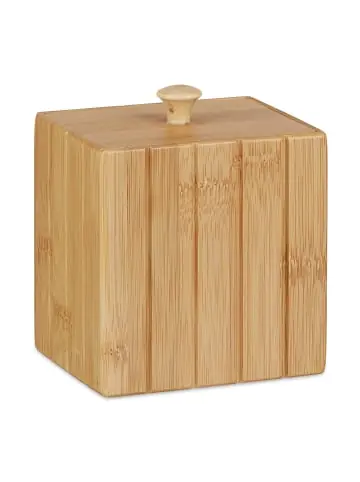 Diese vielseitige kleine Aufbewahrungsbox können Sie universal einsetzen. Die Ordnungsbox mit Deckel ist ideal, um Kleinteile, wie Schmuck und Spielfiguren, Kosmetik- und Badartikel und andere kleine Gegenstände zu verstauen. Die Holzbox harmoniert durch ihren warmen Farbton und die natürliche Maserung besonders gut mit Einrichtungen im Landhausstil, kann jedoch auch mit anderen Stilen kombiniert werden. Die Dekobox besteht komplett aus natürlichem Bambus, wodurch sie robust und widerstandsfähig ist. Einer Verwendung in feuchten Räumen, wie der Küche oder dem Badezimmer steht dadurch nichts im Weg. Aufbewahrungsbox mit Deckel im Detail – Gesamtmaße H x B x T: ca. 11,5 x 10 x 8 cm – Innenmaße H x B x T: ca. 9 x 8,5 x 6,5 cm – Gewicht: ca. 0,2 kg – Material: Bambus – Farbe: Natur – Im 2er SetKleine Holzbox aus Bambus – Natürliche Maserung – Warmer, freundlicher Farbton – Dezentes Streifen-Design – Abnehmbarer Deckel – Ideal für KleinteileLieferumfang – 2x Aufbewahrungsbox mit Deckel – Dekorationsartikel sind nicht im Lieferumfang enthalten