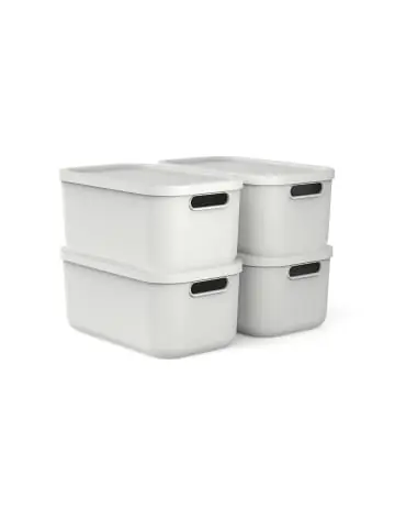Aufbewahrungsbox 4er-Set | ALBULA LIGHTWir erweitern unsere modernen und beliebten ALBULA Boxen um 2 weitere Größen. Die neuen, designorientierten 12 l und 20 l Boxen passen perfekt zu den bereits bestehenden Größen und ergänzen das komplett durchdachte System. Mit den neuen Modellen, welche in 5 verschiedenen, modernen Farben vorhanden sind, findet jeder die passende Größe sowie Farbe für sich. Somit schaffen Sie in Ihrem Zuhause eine total neue Art und Weise der Ordnung. Dank der offenen, ergonomischen Griffen können die Boxen, auch in beladenem Zustand, einfach getragen werden. Produktinformationen: ein Set besteht aus 4 BoxenDesignorientierte BoxenModular und stapelbarModernes DesignBequeme, offene GriffeEinfach zu reinigenHergestellt aus 100% recyceltem Kunststoff und 100% recycelbar