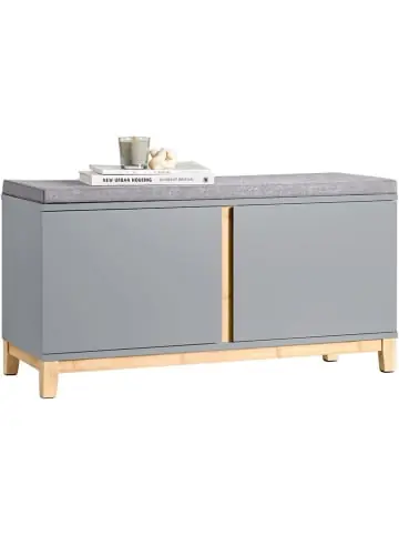 Mit 4 Fächer und 2 Einlegeböden in drei Höhen verstellbar: ideal zum platzsparenden Verstauen Ihrer Schuhe und vieler weiteren Gegenstände. Dank des Sitzkissens können Sie sich Ihre Schuhe bequem an- und ausziehen. Diese Schuhbank hat vier Holzbeine aus Bambus, um Stabilität und starke Belastbarkeit zu gewährleisten.Gewicht: ca.16 kg; Belastbarkeit: bis 150kg; Material: MDF(E1), PB(E1), Bambus.