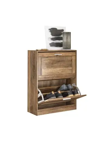 Geeignet für alle Eingangsbereiche: nur 23 cm tief Mit 2 Klappen können Sie eine große Auswahl an Schuhen in verschiedenen Größen und Ausführungen aufbewahren. Die Platte ist ideal für Schlüssel, Fotoalben, Blumenvase usw. Unser Produkt ist mit einer Kippsicherung ausgestattet, um den Schrank an der Wand zu befestigen.Gewicht: ca.12,4kg; Belastbarkeit: bis 20kg; Material: MDF(E1), PB(E1).