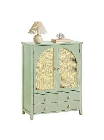 Dank den Gitteroptik-Türen verhindern Sie Schimmel im Schrank, da das Gitter luftdurchlässig ist. Mit 2 höhenverstellbare Einlegeboden hinter den Türen bietet die Kommode ausreichend Platz für Sie. In den 4 Schubladen können Sie Ihre Geldbörse, Regenschirme, Schuhpolitur usw. unterbringen.Gewicht: ca.21,6kg; Belastbarkeit: bis 50kg; Material: MDF(E1).