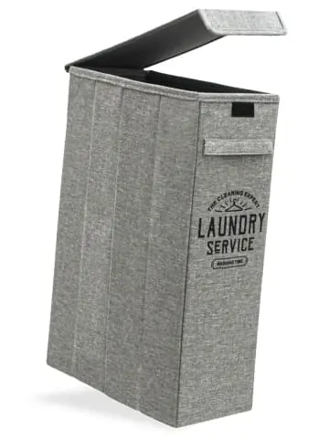Extra schmal: Nischen-Wäschekorb mit DeckelPlatzsparende Wäschebox: Klein, aber oho… Unser Nischenwäschekorb passt überall rein, wo sich sonst nur Staubansammelt. Ob im Bad, im Kinderzimmer oder im Wäscheschrank -er findet in jeder Nische Platz.50 Liter Stauraum – nur 20 cm schmal Für alle, die viel Wäsche haben, aber eine viel zu kleine Wohnung.Die Mini Wäschetruhe passt perfekt neben Waschmaschine undWickeltisch – sogar unters Waschbecken.- Ca. 20 x 60 x 40 cm (BHT) – Insgesamt ca. 50 l VolumenFaltbare Wäschebox mit Deckel Nur ein Handgriff – und Deine Schmutzwäsche ist gut versteckt. Zwei robuste Henkel sorgen dafür, dass Du die Box leicht tragen kannst, auch wenn sie voll ist.Dank Klettverschluss bleibt der Deckel sicher geschlossen.- 2 fest vernähte Tragegriffe – Deckel mit Klettverschluss – Gewicht ca. 1,75 kgSteht (auch leer) von alleine Unter dem grau melierten Bezug im Leinen Look verbirgt sich einfester MDF-Rahmen, der die Wäschekiste besonders stabil macht. – Wände aus MDF-Holz, ca. 2 mm stark- Bezug in Leinenoptik – Material: 100 % PolyesterWasserabweisendes Innenleben Im Inneren ist der Wäschekorb mit strapazierfähigem Vliesstoff bezogen,der Boden hat eine wasserabweisende Beschichtung.- Innenbezug: 100% Polypropylen – Boden: 100% Polyester mit PENicht nur für Wäsche Auch für Spielzeug, Pfandflaschen, Altpapier… Das moderne, zurückhaltendeDesign passt überall. Der Sortierer ist so robust, er lässt sich sogar über denBoden ziehen: Ideal für Kinder.