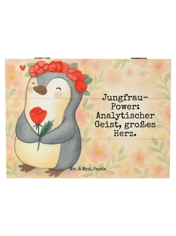 Die Holzkiste von Mr. & Mrs. Panda ist ein wunderschöner Platz, um all deine wertvollen Schätze und Erinnerungen zu bewahren. Sie ist nicht nur funktional, sondern verleiht jedem Raum einen Hauch von Eleganz. Die mit liebevollen Motiven und Sprüchen bedruckte Oberfläche bringt Freude in dein Zuhause. Du kannst die Kiste für alles Mögliche nutzen, sei es für persönliche Fotos, Erinnerungsstücke von besonderen Ereignissen oder als kreatives Geschenk für deine Freunde und Familie. Robust gefertigt aus Holzfaser, verspricht sie Langlebigkeit und Nachhaltigkeit. Die speziellen Einschlagscharniere machen es leicht, die Kiste zu öffnen und wieder zu schließen, sodass du immer schnell an deine Schätze kommst. Pflege sie einfach mit einem feuchten Tuch, um sie schön und gepflegt zu halten.Charmanter Jungfrau Pinguin: Mit einem charmanten Lächeln und einer roten Rose steht unser Pinguin für die wahren Eigenschaften der Jungfrau: Liebe, Analytik und Zuneigung. In sanften Aquarellfarben und umgeben von kleinen Herzen zeigt er, wie besonders es ist, die kleinen Dinge im Leben zu schätzen. Jungfrau-Power: Analytischer Geist, großes Herz – die ideale Botschaft, um Geburtstagskinder oder einfach nur geliebte Menschen zu ehren. Lass dich von dieser Kreation anstecken und trage die positive Energie in dein Herz!Sternzeichen als Begleiter: Mit Liebe und Leidenschaft für die Astrologie schafft Mr. & Mrs. Panda eine zauberhafte Sternzeichen Kollektion. Von den leidenschaftlichen Feuerzeichen bis zu den tiefgründigen Wasserzeichen, jedes Design fängt die Essenz der Astrologie ein. Diese Kollektion ist mehr als nur eine Reihe von Produkten — sie ist eine Hommage an die Sterne, die uns leiten und inspirieren. Jedes Mal, wenn du eines dieser von Mrs. Panda handgezeichneten Motive anschaust, wirst du in eine Welt entführt, in der Humor und Tiefgang herrschen. Finde dein Sternzeichen oder das eines geliebten Menschen und teile ein Stück Himmel auf Erden. Diese Kollektion ist perfekt für all jene, die die Sterne betrachten und mehr sehen als nur das Licht der Nacht. Entdecke ein Universum voller Farben, Lachen und Liebe, kunstvoll dargestellt in den Sternzeichen von Mr. & Mrs. Panda.Unser Produkt wird gesucht als: Tierkreiszeichen, geschenkbox holz, holzschachtel, Erinnerungskiste, holzschatulle, Geburtstagsgeschenk, Astrologie, Holzbox, Aufbewahrungstruhe, holzkästchen, kiste holz, Aufbewahrungsbox aus Holz, geschenkbox mit deckel, Kiste, Aufbewahrungsbox Holz, Holztruhe, schmucktruhe, Box, fotokiste, truhe holz, Geschenke Jungfrau, Erinnerungsbox, Box aus Holz, fotobox, Kiste mit Deckel, truhe mit deckel, Truhe, Schatulle, Geschenkbox, Holzkiste, schatztruhe, Geschenke für Frauen, schatzkiste holz, Sternzeichen, schmuckkiste, aufbewahrungskiste mit deckel, Holzbox mit Deckel, Holz Aufbewahrungsbox, Jungfrau, Holzkiste mit Deckel, Aufbewahrungskiste, geschenkkiste, schmuckbox, box holz, erinnerungsbox holz, Schatzkiste