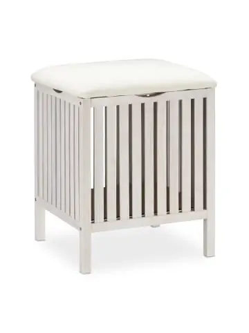 Dieser Hocker mit Stauraum ist besonders für kleine Badezimmer geeignet. Er kann als praktischer Wäschekorb oder als Aufbewahrungsmöglichkeit für Handtücher genutzt werden. Das bequeme Polster, welches zugleich der Deckel der Wäschebox ist, bietet dabei eine gemütliche Sitzgelegenheit zum Strümpfe anziehen, Nägel machen oder rasieren. Die Kombination aus weißem Walnussholz und cremefarbenem Sitzkissen macht den Badwäschekorb zu einem klassischen Vertreter des Landhausstils.Hinweis: Für sein besonderes Finish in Weiß wurde das Material gekalkt. Beachten Sie beim Kontakt mit Händen oder der Kleidung, dass diese Schicht leicht abfärben kann. Die Farbe kann jedoch ganz leicht wieder abgeklopft werden.Wäschekorb mit Sitz im Detail – Maße gesamt H x B x T: ca. 53 x 41 x 41 cm – Maße Stauraum H x B x T: ca. 34,5 x 34 x 34 cm – Volumen Wäschekorb: ca. 40 l – Bodenfreiheit: ca. 11 cm – Traglast: max. 100 kg – Gewicht: ca. 4,3 kg – Material: Walnussholz, MDF, Stoff (Polyester, Baumwolle) – Farbe: WeißBadhocker mit Stauraum – Ideal zum Sammeln von schmutziger Wäsche – Handtücher platzsparend im Inneren verstauen – Überzeugt mit bequemer, gepolsterter Sitzfläche – Schickes Möbelstück im klassischen Landhausstil – Holz wurde weiß gekalkt – Für Shabby Chic LookLieferumfang – 1x Sitzwäschetruhe in Einzelteilen – Mit Anleitung und Montagematerial – Dekoartikel sind nicht im Lieferumfang enthalten