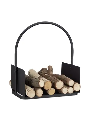 Dieser Kaminholzkorb ist ideal zur Aufbewahrung von Brennholz für Ihren Kamin oder Ofen. Der Brennholzkorb ist mit einem praktischen runden Henkel ausgestattet, wodurch er sich zudem einfach und bequem tragen lässt. Der Kaminkorb besteht komplett aus Stahl und ist robust und stabil.Der modern gestaltete Feuerholzkorb besticht durch sein schlichtes elegantes Design in Kombination mit der satten schwarzen Farbe. Der Allzweckkorb kann auch als Zeitungsständer und zur Aufbewahrung von Büchern und anderen Gegenständen genutzt werden.Kaminholzkorb schwarz im Detail • Maße H x B x T: ca. 46 x 40 x 30 cm • Gewicht: ca. 2,5 kg • Material: Pulverbeschichteter Stahl • Farbe: Schwarz • Mit rundem Henkel ausgestattetGroßer Brennholzkorb für den Kamin • Zur Aufbewahrung von Kaminholz oder Briketts • Dekorativ durch modernes Design • Universal einsetzbar, z.B. als Zeitungsständer • Stabil und robust • Einfacher und schneller AufbauLieferumfang • 1x Kaminholzkorb in Einzelteilen • Dekorationsartikel sind nicht im Lieferumfang enthalten