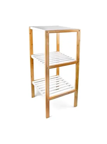 Mit diesem Standregal aus Bambus schaffen Sie Ordnung Ihrer Wohnung. Die 3 Ablagen bieten im Bad beispielsweise Platz für Handtücher, Cremes oder Kosmetik. Die Fächer sind weiß lackiert. Damit bieten sie einen zusätzlichen optischen Reiz für Ihre Einrichtung.In allen Wohnbereichen macht der natürliche Bambus eine gute Figur. In Küche, Flur, Keller oder Gästezimmer verstauen Sie kleine Gegenstände, Bücher, Schuhe und vieles mehr. Der natürliche Ton des Holzes verströmt eine schlichte Schönheit und fügt sich dezent in jeden Raum. Bambus regal mit 3 weißen Ablagen im Detail – Größe gesamt H x B x T: ca. 80 x 33 x 34 cm – Wiegt ca. 3,1 kg – Komplett aus Bambus gefertigt – Mit 3 Ablageflächen, jeweils ca. 31 cm hoch – Etagen sind weiß lackiert, Korpus naturbelassen braun – FreistehendBambusregal für Bad, Küche uvm. – Für Bad, Küche, Keller, Vorratskammer etc. – Lagerung von Badartikeln, Handtüchern, Küchenutensilien uvm. – Viel Stauraum auf kleiner Stellfläche – Sicherer und stabiler Stand – Natürliche Maserung für elegante, schlichte SchönheitLieferumfang- 2 Seitenteile – 3 Regalböden – Anleitung, Werkzeug und Montagematerial – Dekorationsartikel sind im Lieferumfang nicht enthalten