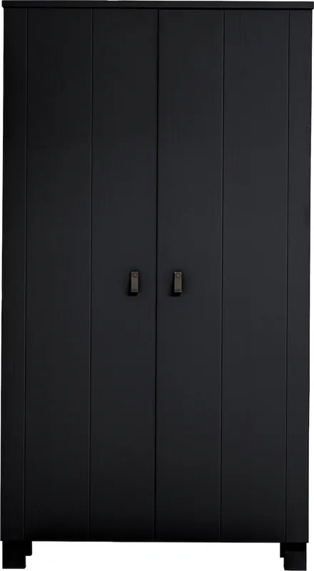 Großzügige schwarze Basisgarderobe mit Ledergriffen. Kiefernholz, FSC®-zertifiziert. Modern mit coolem Touch. H 203 cm x B 110 cm x T 55 cm
