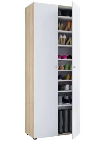 Vandol I Schuhschrank 2 Türen, Dekor Sonoma-Eiche, weiß ist ein Schuhschrank in der Farbe Eiche, der sowohl Stil als auch Funktionalität in Ihr Zuhause bringt. Vandol I Schuhschrank 2 Türen, Sonoma Eiche Dekor, weiß. Dieses Produkt wurde mit viel Liebe zum Detail hergestellt, was sowohl Ästhetik als auch hohe Haltbarkeit gewährleistet. Bei der Gestaltung wurde sowohl auf Funktionalität als auch auf Stil geachtet, was es zur perfekten Wahl für jeden Raum in Ihrem Zuhause macht. Die verwendeten Materialien sind von hoher Qualität, was dem Produkt eine lange Lebensdauer verleiht und dafür sorgt, dass es dem täglichen Gebrauch standhält. Ob zur Aufbewahrung oder als dekorative Ergänzung, dieses Produkt wertet Ihre Einrichtung auf und bringt zusätzlichen Komfort und Eleganz in Ihr Zuhause.