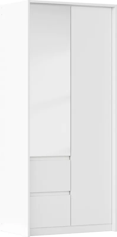 Kleiderschrank inklusive Passepartout, optional mit Beleuchtung. Äußere Türen mit Push-to-Open Funktion. Geräumige Schubladen mit Griffmulden zum einfachen Öffnen der Türen und Schubladen. Fachböden und Kleiderstangen können individuell eingesetzt und in der Höhe verstellt werden. 100% Made in Germany, ausgezeichnet mit dem Blauen Engel und dem Goldenen M