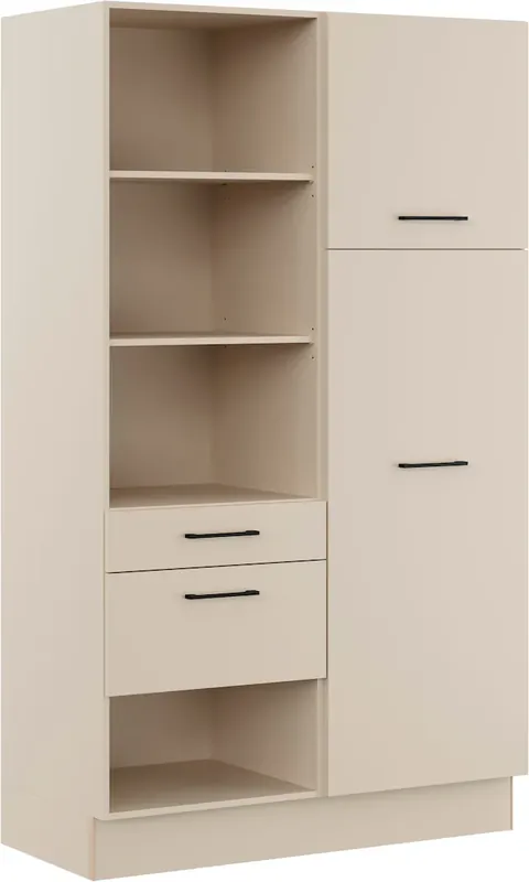 Vormontiert, dadurch besonders aufbau- und montagefreundlich. Stabile Metallauszüge bis 30 kg belastbar. Vollauszug in Anthrazit mit Servosoft (Soft-Close-Funktion). Höhenverstellbare Füße: +25 mm bis -10 mm. beinhaltet: Seitenschrank mit 1 Schubkasten und 1 Auszug, Seitenschrank für Getränkekisten