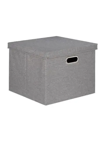 Das praktische 6er Set Aufbewahrungsboxen schafft Ordnung in jedem Raum. Ob für Unterwäsche im Kleiderschrank, Accessoires in der Garderobe, Spielzeug im Kinderzimmer oder Pflegeartikel im Bad, in den Faltboxen sind Ihre Utensilien übersichtlich verstaut. Platzieren Sie die Ordnungsboxen dank ihres quadratischen Designs im Schrank oder Regal, wo sie mit dem Griff schnell und einfach herausgezogen werden können. Bei Nichtgebrauch sind die modernen Stoffboxen im Nu zusammengefaltet verstaubar.Aufbewahrungsbox 6er Set im Detail – Maße je Box H x B x T: ca. 34 x 43 x 43 cm – Innenmaße je Box H x B x T: ca. 32 x 40 x 40 cm – Stauraum je Box: ca. 51 l – Traglast je Box: ca. 5 kg – Gewicht je Box: ca. 1,6 kg – Material: Polyester, Karton, Metall – Farbe: grauFaltbare Ordnungsboxen mit Deckel – Moderne Stoffboxen für Bad, Wohnzimmer, Flur uvm. – Für Spielzeug, Kleidung, Bücher etc. verwendbar – Mit Deckel Unordnung im Inneren elegant verstecken – Ideal für Schrank oder Regal – Mit Griff zum Herausziehen – Bei Nichtgebrauch platzsparend zusammenfaltenLieferumfang – 6x Verstaubox – Dekoartikel sind nicht im Lieferumfang enthalten