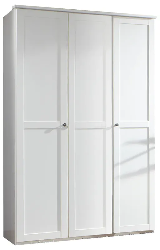 Zeitloser Kleiderschrank in Landhaus-Optik. Griffe, Kleiderstangen, Beschläge aus Metall. Innendekor Leinen grau. In den Farben weiß oder graphit. Made in Germany