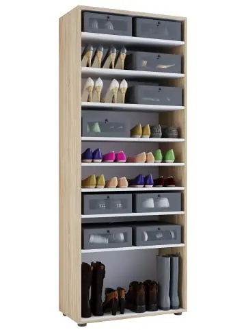 Vandol I Schuhschrank 9 Fächer, Dekor Sonoma-Eiche ist ein Schuhschrank in Farbe, der sowohl Stil als auch Funktionalität in Ihr Zuhause bringt. Vandol I Schuhschrank 9 Fächer, Dekor Sonoma-Eiche. Dieses Produkt wurde mit viel Liebe zum Detail hergestellt, was sowohl Ästhetik als auch hohe Haltbarkeit gewährleistet. Bei der Gestaltung wurde sowohl auf Funktionalität als auch auf Stil geachtet, was es zur perfekten Wahl für jeden Raum in Ihrem Zuhause macht. Die verwendeten Materialien sind von hoher Qualität, was dem Produkt eine lange Lebensdauer verleiht und dafür sorgt, dass es dem täglichen Gebrauch standhält. Ob zur Aufbewahrung oder als dekorative Ergänzung, dieses Produkt wertet Ihre Einrichtung auf und bringt zusätzlichen Komfort und Eleganz in Ihr Zuhause.