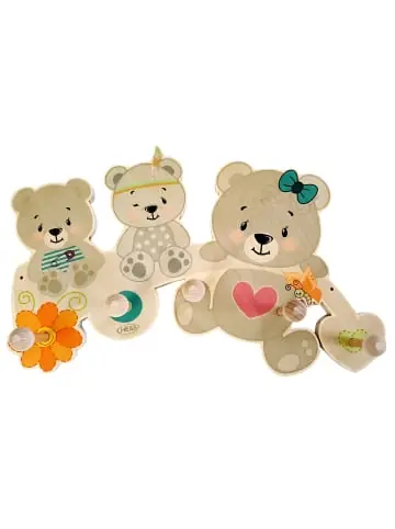 Die bunte Garderobe aus Holz ist ein absoluter Blickfang in jedem Kinderzimmer oder Flur. Die lustigen Motive und die farbenfrohe Gestaltung sorgen für eine freundliche Atmosphäre und gute Laune.Die 5 Kleiderhaken bieten viel Platz für Jacken, Pullover und alles was aufgehängt werden kann. Die liebevolle Gestaltung und das kindliche Design sorgt beim Anziehen für ein Lächeln. Wird sie in einer niedrigen Höhe aufgehängt, können die Kleinen sich schon bald ganz alleine ankleiden. Achtung! Dekoration, kein Spielzeug.