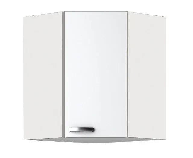 Eckhängeschrank mit einer Tür. Türanschlag wechselbar. 2 Einlegeböden. Extra Höhe von 70,4 cm bietet viel Stauraum. Qualitätsmöbel Made in Germany