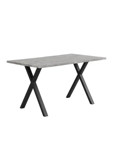 Dieser Tisch vereint minimalistisches Design mit robustem Industrie-Charme. Sein markantes Kreuzbein-Design aus Metall sorgt für herausragende Stabilität und wird zum dekorativen Blickfang in jedem Raum.Das Materialmix aus einer hochwertigen MDF-Tischplatte in Betonoptik und einem schmiedeeisenartigen Metallgestell verleiht dem Tisch einen modernen, langlebigen und charakterstarken Look. Die Oberfläche ist extrem flach und widerstandsfähig gegen Verformungen.Hohe Vielseitigkeit: Der Tisch ist aufgrund seiner schlichten Eleganz und robusten Bauweise ideal als Esstisch oder großer Couchtisch geeignet und passt sich flexibel verschiedenen Wohnsituationen und Einrichtungsstilen an.Praktische Vorteile:Extrem stabil: Kreuzgestell und hochwertige Materialien tragen bis zu 130 kg.Einfache Montage: In ca. 20 Minuten mit beiliegendem Werkzeug und Anleitung aufzubauen.Pflegeleicht: Die ebene, robuste Oberfläche ist leicht zu reinigen.Material: MDF (Tischplatte), Metall (Gestell)Belastbarkeit: 130 kgProduktgewicht: 21,2 kgMontage: Erforderlich (Werkzeug und Anleitung inklusive)Lieferung: 1 PaketMit seinem zeitlosen, industriellen Design und der praktischen Vielseitigkeit ist dieser Tisch eine funktionale und stilvolle Bereicherung für Ihr Zuhause.