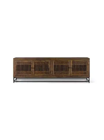 TV-Möbel mit 4 Türen aus Akazienholz mit Metallgestell und Innenböden für organisierte Aufbewahrung. Farbe: Braun. Maße: 66 cm Höhe x 200 cm Breite x 45 cm Tiefe. Gewicht: 75 kg. Verpackung: 71 x 206 x 50 cm. Naturholz und Handarbeit, daher mögliche Abweichungen in Farbe und Maserung. Wood