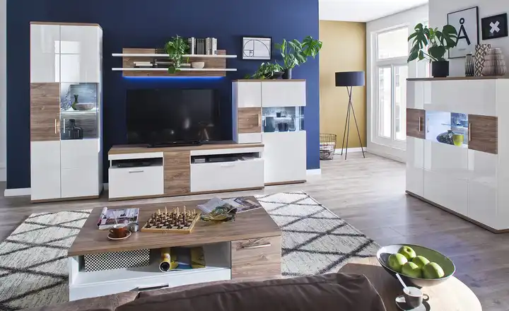 Von Geschirr bis hin zu Servietten kann alles im Highboard Zypern verstaut werden. Hinter den drei Türen sind dafür elf Fächer zu finden. Die Einlegeböden zwischen den Fächern können teilweise in der Höhe verstellt werden. In den beiden mittigen Vitrinenfächern können Sie besonders dekorative Stücke unterbringen. Zypern selbst ist größtenteils in Weiß designt und wird in Sterling Eiche (Nachbildung) abgesetzt.