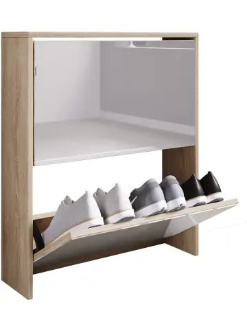 Highlights: – Maße ca. H. 73 x B. 63 x T. 17 cm- Beschläge aus hochwertigem Metall – Zwei Fächer zum Aufklappen – Für ca. sechs Paar Schuhe- Praktischer Frontspiegel Der Schuhschrank „Stido L“ ist ein kleines Raumwunder mit viel Stauraum. Jedes der zwei Fächer hat eine Fachunterteilung, damit Sie Ihre Schuhe platzsparend und übersichtlich verstauen können.Durch den eleganten Frontspiegel wird der Schuhschrank zu etwas ganz Besonderem.VCM hat sich seit den 70er-Jahren auf die Konstruktion, Produktion und Vertrieb von Möbeln mit einem fairen Preis/Leistungsverhältnis spezialisiert und damit bereits Millionen Haushalte verschönert.- Schuhschrank für ca. sechs Paar Schuhe- Zwei Kipper zum leichten Öffnen vom Schuhregal- Schuhkommode mit elegantem Spiegel- Maße ca. H. 73 x B. 63 x T. 17 cm
