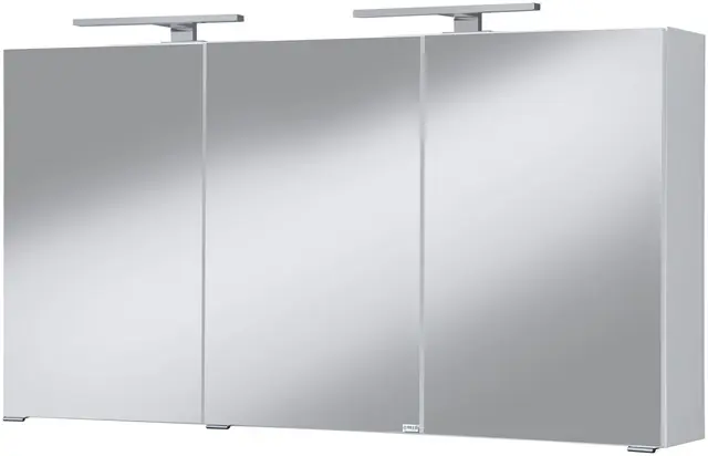 Die Türscharniere sind gedämpft. Mit 2 leistungsstarken LED-Leuchten / Aufsatzleuchten. Individuelle Anpassung durch verstellbare Einlegeböden möglich. Alle Beschläge sind aus Metall. hochwertige Verarbeitung, Made in Germany