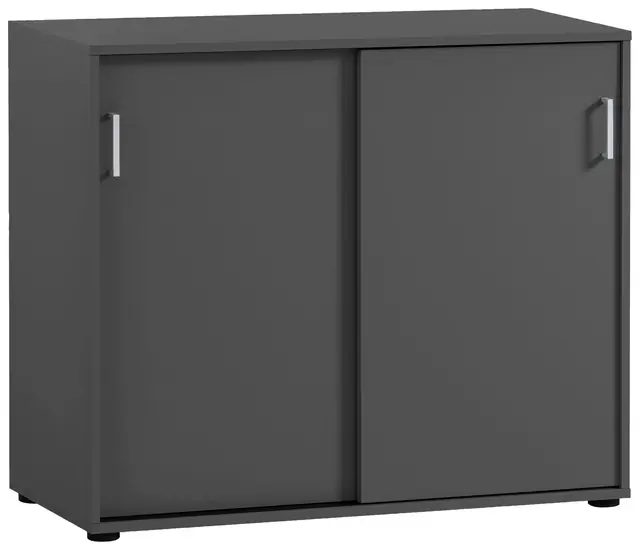 Maße 100/41/83,6 cm. Türfach in der Mitte durch senkrechten Boden getrennt. 1 Einlegeboden pro Türfach. Made in Germany. Griffe und Möbelgleiter aus Kunststoff