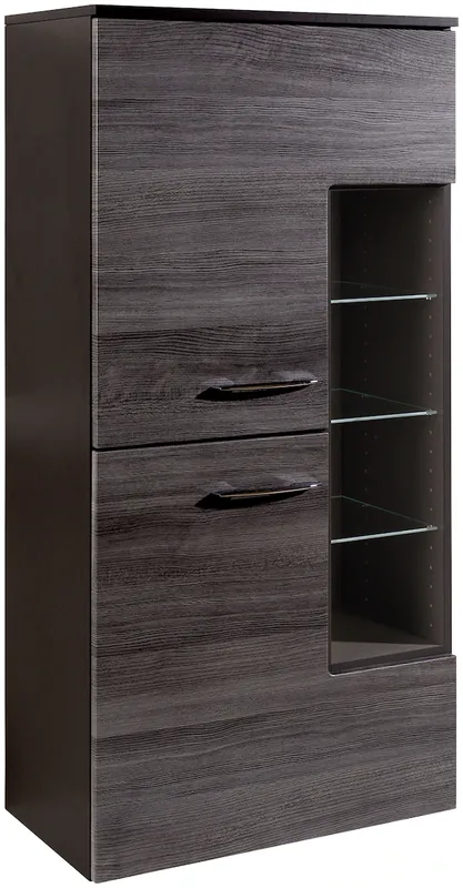 Schrank und Regal Kombination. Regalfach mit 3 Glasböden. Mit silberfarbenen Bügelgriffen. Softclose und Türdämpfer, Made in Germany. 5 Jahre Herstellergarantie auf alle Möbelteile