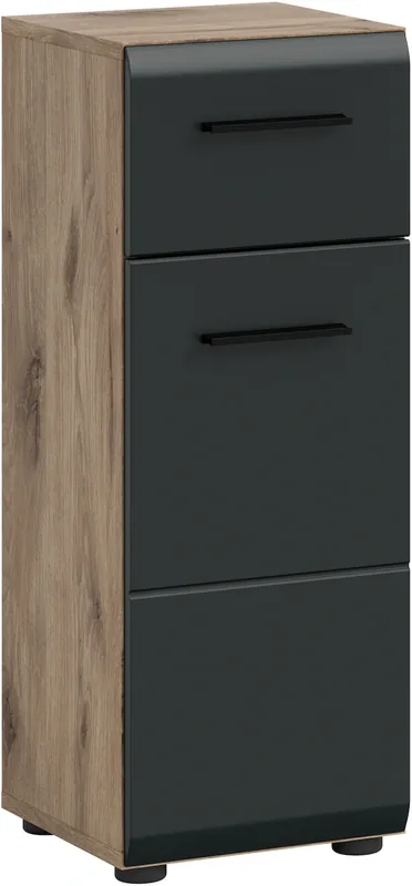 Maße B/H/T ca.: 30 x 80 x 30 cm. 1 Tür (Türanschlag re/li wechselbar),2 Schubkästen. hochwertige MDF Front mit Rillenfräsung. Einfache Montageinkl. Aufbauanleitung und Pflegeleichte Oberflächen mit einfacher Reinigung. Das Möbel besteht aus FSC®-zertifiziertem Holzwerkstoff zum Schutz der Wälder