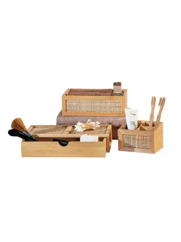 Frei, unkonventionell, natürlich – das ist der angesagte Boho-Style. Die Serie Allegre von WENKO verwandelt Ihr Badezimmer in einen trendigen Boho-Wohlfühltraum.Natürliche Farben und Materialien gehören zu dieser Stilrichtung dazu. Mit Accessoires der Allegre-Serie setzen Sie mit der Kombination aus Bambus und Rattan liebevolle Akzente in Ihrem Boho-Badezimmer und auch in anderen Räumen. Zur Aufbewahrung und Organisation im Bad beinhaltet die Serie die Badbox Allegre mit Schublade.Die Aufbewahrungsbox besteht aus dem hochwertigen Naturmaterial Bambus. Damit punktet das trendige Bad-Accessoire auch in Sachen Nachhaltigkeit, denn Bambus ist ein schnell nachwachsender Rohstoff. Besonders macht die Box das optische Highlight aus Rattan auf der Oberseite, das den Boho-Look komplett macht. Die dekorative, kleine Schublade zum einfachen Herausziehen verstaut Badutensilien und Accessoires nahezu blickdicht.Ideal eignet sich die Schubladenbox zum Aufbewahren von länglichen Badutensilien wie Kämmen, Schminkpinseln, Nagelfeilen oder -scheren. In der rechteckigen Badbox in der handlichen Größe von (B x H x T): 28 x 6 x 14 cm finden viele Teile einen geordneten Platz und sind immer schnell griffbereit. Auch in anderen Räumen Ihres Zuhauses ist das Boho-Accessoire ein praktischer Aufbewahrungshelfer. In Schlaf- oder Wohnzimmer lassen sich kleine Lieblingsstücke wie Schmuck aufgeräumt aufbewahren. Auf dem Schreibtisch dient die Kiste als Ablage für Büromaterialien wie Klammern, kleine Blöcke oder die Lesebrille. Ideal eignet sich die Schublade zum geordneten Aufbewahren von Stiften.Kombinieren lässt sich die Bambus-Rattan-Box mit verschiedenen Farben im Boho-Stil – dazu zählen zum Beispiel Grün, Hellblau oder Schwarz. Die Serie Allegre von WENKO beinhaltet weitere Ablagen und Boxen mit Deckel aus Bambus in verschiedenen Größen und Ausführungen, die Ihrem Zuhause den Boho-Flair verleihen.- Badbox Allegre mit Schublade- Dekorative Aufbewahrungsbox im Boho-Style- Aus Bambus und Rattan-Geflecht- Zur Aufbewahrung von Badutensilien- Ablage für Schmuck und Accessoires- Maße (BxHxT): 28x6x14 cm