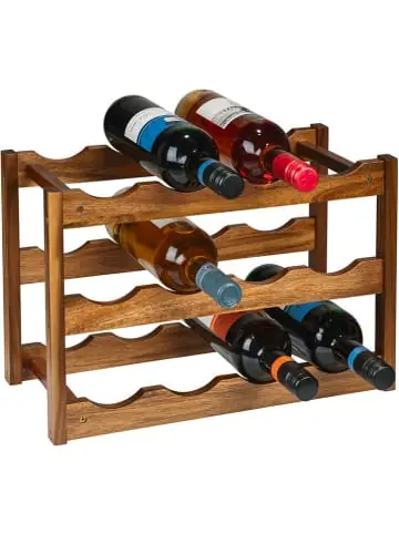 – Material: Akazienholz – Ablageebene(n): 2 – bietet Platz für bis zu 12 Weinflaschen – funktional und dekorativ