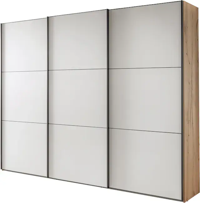 Leichtläufige Schwebetüren – sparen Platz im Raum und erleichtern den Zugang zum Schrankinhalt. Hochwertige Beschläge für Langlebigkeit. Individuell höhenverstellbare Schrankinneneinteilung. Erstklassige Qualität „Made in Germany“. Einfache Montage mit bebilderter Aufbauanleitung