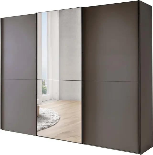 Leichtläufige Schwebetüren – sparen Platz im Raum und erleichtern den Zugang zum Schrankinhalt. Hochwertige Beschläge für Langlebigkeit. Individuell höhenverstellbare Schrankinneneinteilung. Erstklassige Qualität „Made in Germany“. Einfache Montage mit bebilderter Aufbauanleitung