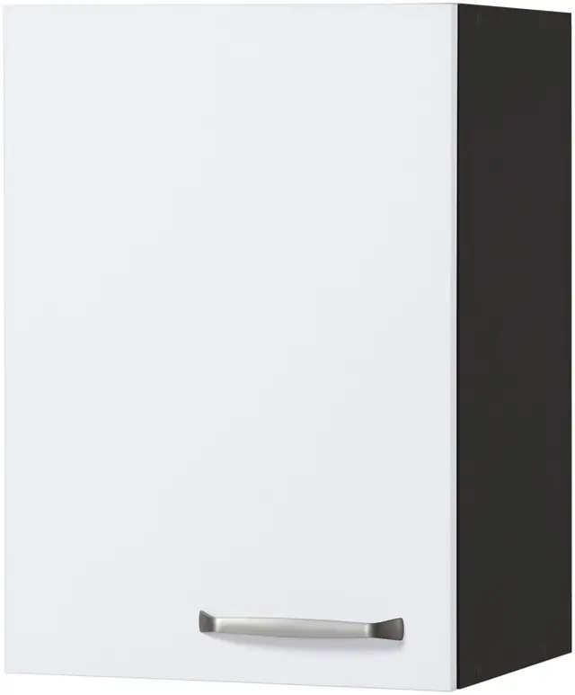 Der Türanschlag ist wechselbar. Mit pflegeleichten Oberfächen. Der Schrank bietet viel Stauraum. Mit Metall-Bügelgriffen. Einfache Selbstmontage inkl. Aufbauanleitung