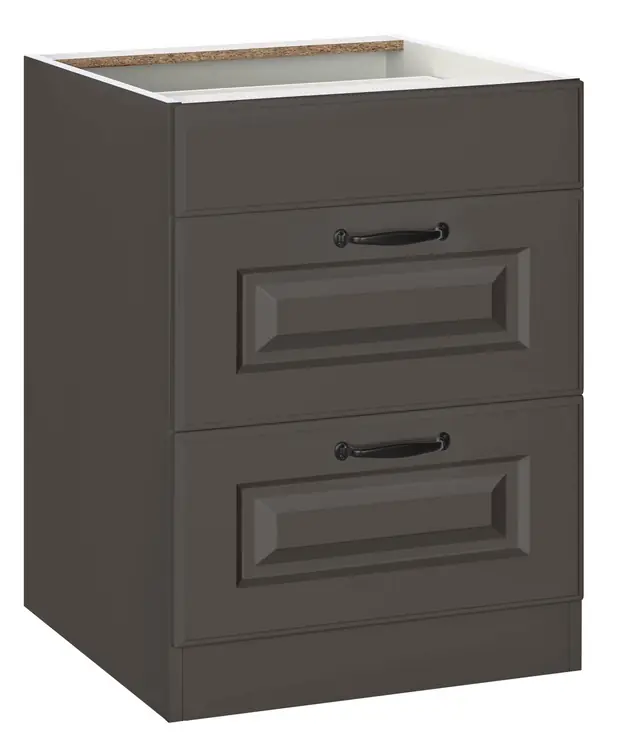 Maße (B/T/H): 60/57/82 cm. Ohne Arbeitsplatte – dadurch flexibel einsetzbar. Beliebig um weitere Schränke erweiterbar, z.B. auch über Eck. Pflegeleichte MDF Fronten mit Kassettenfräsung. Made in Germany