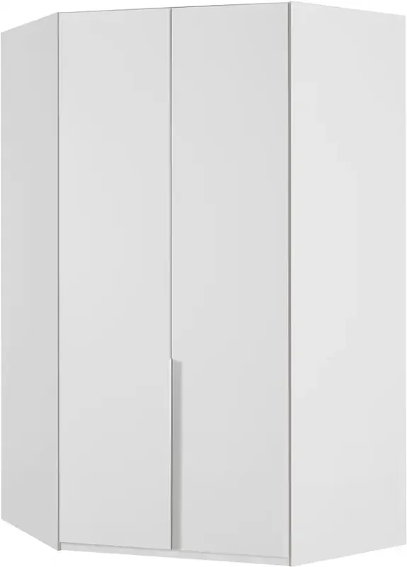 Platzsparende Ecklösung. Mit zahlreichen Böden und 1 Kleiderstange. Edle Metallgriffe. Beschläge und Kleiderstange aus Metall. In 5 Farben