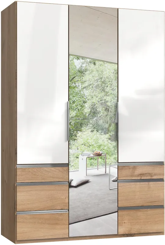 Ein Stauraummöbel mit schicker Optik kehrt mit dem modernen Kleiderschrank »Level« von FRESH TO GO im Zuhause ein. Optisch zeichnet er sich durch die Glastüren und die mittige Spiegeltür aus. Der Korpus ist dank der Kunststoffoberfläche pflegeleicht und strapazierfähig. Im Innenraum ist viel Platz für die Bekleidung vorhanden. Zudem befinden sich seitlich mehrere Schubkästen, in denen kleinere Utensilien ordentlich und staubfrei aufbewahrt werden können.
