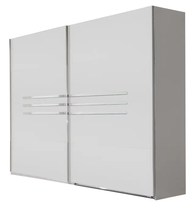 Glänzende chromfarbene Aufleistungen. Chromfarbene Metallgriffleisten. In 4 Farben. Holzdekore mit besonderer Haptik. Tiefe/Höhe: 65/210 cm