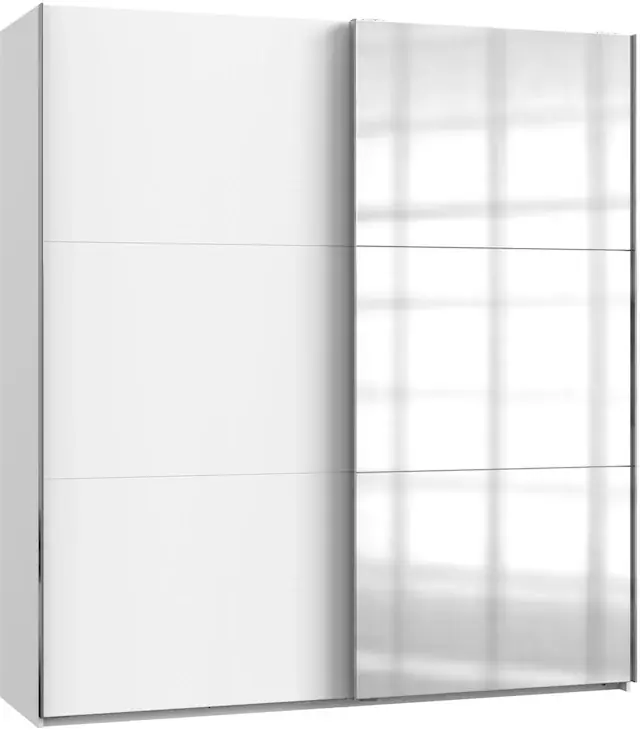 Ein modernes Ambiente schafft der geschmackvolle Schwebetürenschrank »Level« der Marke FRESH TO GO im heimischen Schlafzimmer. Der Schrank zeichnet sich neben der 1 Spiegeltür und den chromfarbenen Metallgriffleisten besonders durch seine großen Türelemente aus. Neben einer ansprechenden Optik punktet der Kleiderschrank durch hohe Funktionalität. Ergänzt wird das Platzangebot durch Kleiderstangen.