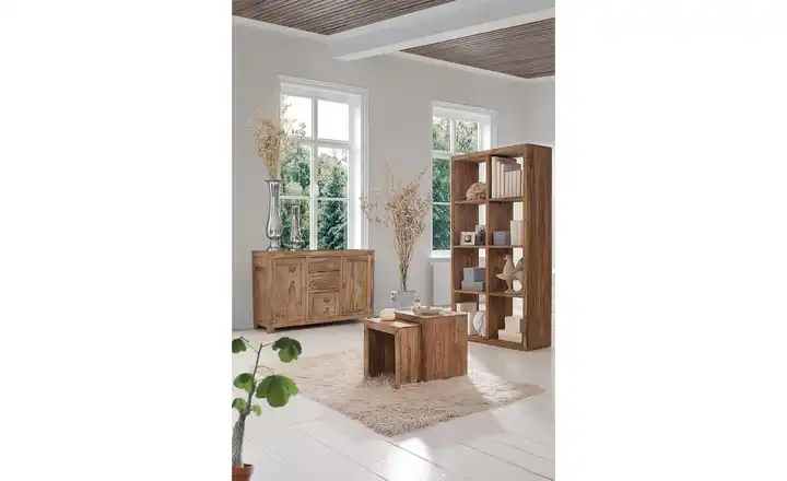 Zu den vielen Dingen die aus Indien kommen – wie Yoga oder leckeres Curry – gehört auch Sheesham-Holz. Nicht ohne Grund nennt man Sheesham auch Indisches Palisander. Es zeichnet sich durch seine Stabilität und besondere Optik aus. Dazu gehören starke Farb- und Strukturunterschiede. Sie machen auch den besonderen Charme des Sideboards Palu aus. Um den Look noch besser hervorzuheben, ist Palu gebeizt und anschließend lackiert worden. Das Sideboard verfügt über Stauraum auf 175 Zentimetern Breite. Er unterteilt sich in vier Fächer hinter den Drehtüren und drei große Schubladen.